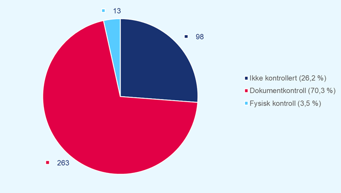 Antall og andel anmodninger om fysisk kontroll som ble fulgt opp med kontroller i 2021