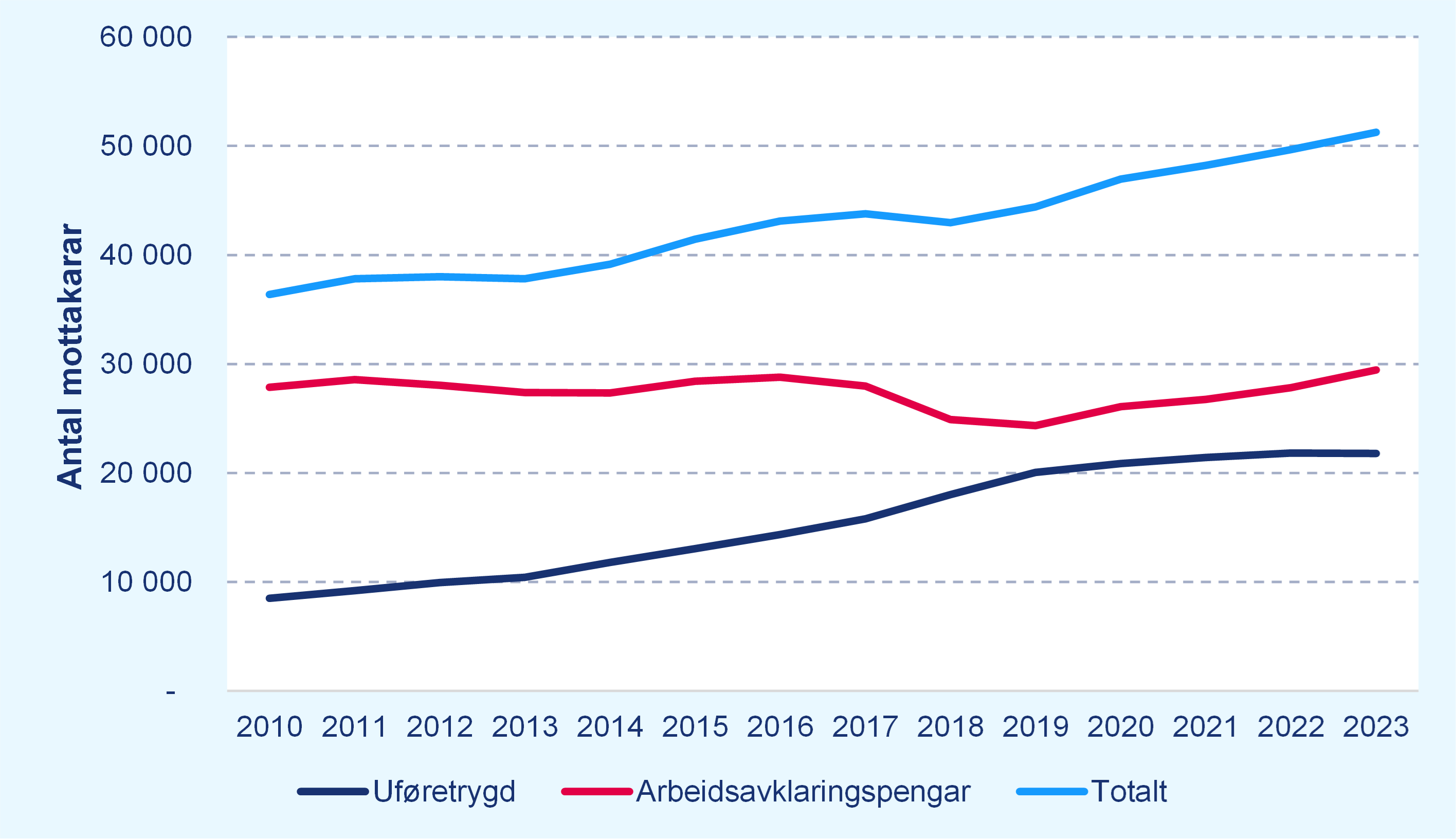- Både antalet og andelen unge som får uføretrygd, har meir enn dobla seg. Det er ei urovekkjande utvikling.